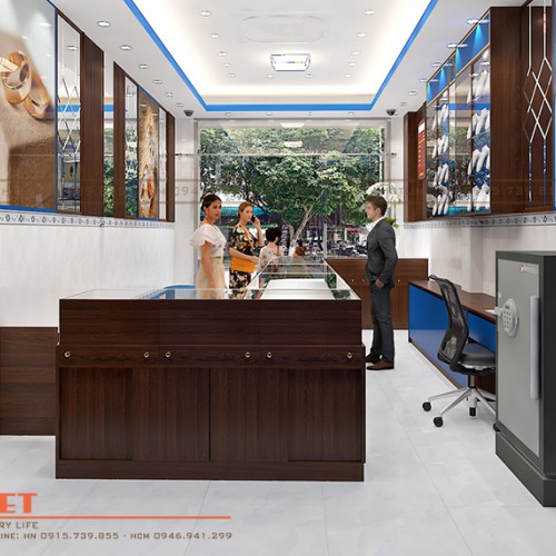 Nhận thấy thị trường kinh doanh mặt hàng trang sức hiện đang rất phát triển, vì vậy, anh Huy muốn tận dụng mặt bằng có sẵn để thiết kế tiệm vàng. Hiểu được tầm quan trọng của việc decor nên chủ đầu tư đã tìm đến Nội Thất Cosp để được tư vấn cũng như đưa ra những giải pháp tốt nhất cho cửa hàng của mình.