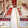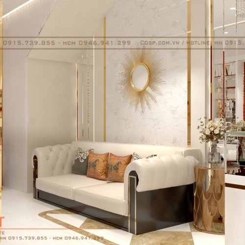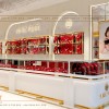 Nhằm mang đến sự sang trọng, đẳng cấp, chúng tôi tư vấn cho khách hàng thiết kế tiệm vàng theo phong cách hiện đại. Sử dụng gam màu trắng và đỏ kết hợp nẹp chỉ inox mạ xi vàng làm cho không gian trở nên nổi bật, sang trọng và thu hút khách. Các tủ trưng bày sản phẩm được làm từ kính cường lực trong suốt đảm bảo tính thẩm mỹ đồng thời đáp ứng được cả tính an toàn. Sử dụng nền đá tone màu sáng làm nổi bật sự sang trọng của cửa hàng. Đèn downlight và đèn thả trang trí giúp đem đến ánh sáng trong cửa hàng, đặc biệt là tạo hiệu ứng lung linh cho các sản phẩm trang sức.