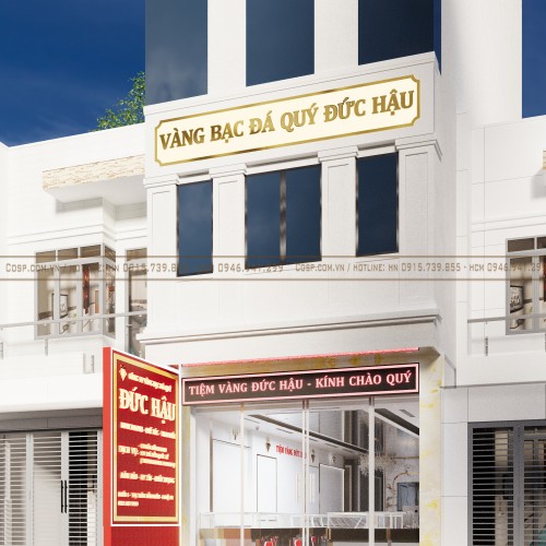 Tiệm vàng Đức Hậu được setup hệ thống biển bảng kích thước lớn, nhiều loại khác nhau tăng nhận diện. Từ biến chính cho đến biển hông đều được làm từ chất liệu bền bỉ có khả năng chống chọi điều kiện ngoại cảnh tốt tiết kiệm chi phí cho chủ đầu tư.