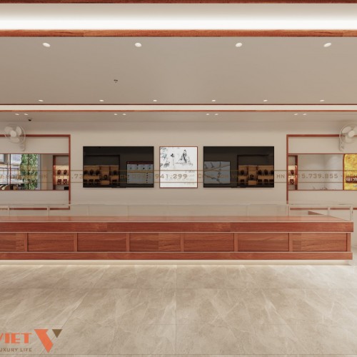Phương án thiết kế nội thất tiệm vàng Đức Hậu tại Nghệ An vừa mang phong cách hiện đại vừa truyền thống đan xen rất ấn tượng và mang nét độc đáo riêng. Bạn đọc có thể khám phá thêm về mẫu trang trí không gian tiệm vàng này qua nội dung dưới đây.