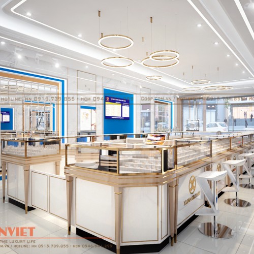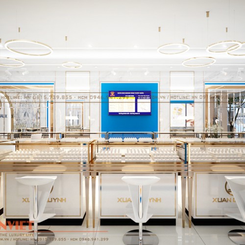 Chấp nhận một mức đầu tư lớn để sở hữu mẫu thiết kế tiệm vàng sang trọng, một không gian kinh doanh tương xứng, giúp cho các sản phẩm được trưng bày một cách trang hoàng, lộng lẫy, phát huy được những lợi thế về mặt tiền thu hút khách hàng chính là những mong muốn của anh Hùng - chủ đầu tư tiệm vàng Xuân Quỳnh. Hiểu được những mong muốn đó, đội ngũ kiến trúc sư và nhân công của Penviet đã thực hiện khảo sát và lên ý tưởng để đưa ra một giải pháp không gian hoàn hảo nhất, phù hợp với hiện trạng mặt bằng và sử dụng các loại vật liệu theo sát mức đầu tư của chủ tiệm vàng. Từ những chi tiết nhỏ đến các điểm nhấn lớn đều được chăm chút để hình ảnh và thương hiệu tiệm vàng có thể để lại dấu ấn tốt đẹp nhất đối với mỗi khách hàng đến đây trải nghiệm dịch vụ mua sắm.