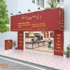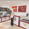Chúng tôi tư vấn cho anh Hoàng Anh sử dụng màu đỏ kết hợp nền trắng tạo cảm giác thoáng đãng, rộng rãi kết hợp với các chi tiết được nẹp viền inox, mạ si vàng mang đến vẻ đẹp sang trọng, quý phái cho cửa tiệm.