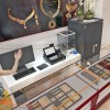 Quầy thu ngân cũng được đặt cạnh tủ trưng bày để tạo nên sự đồng bộ trong mẫu thiết kế và giúp khách hàng dễ dàng thực hiện giao dịch, thanh toán.