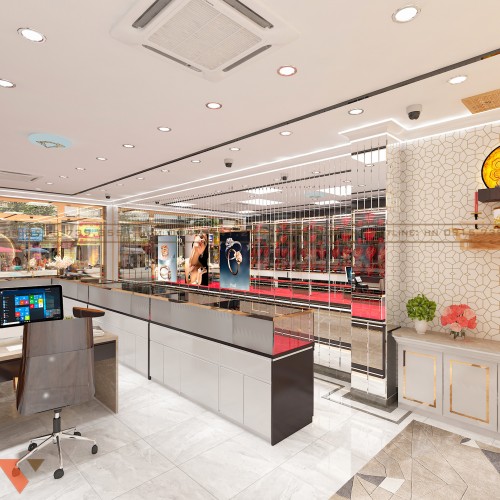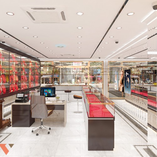 Để chủ đầu tư sở hữu được không gian cửa hàng kinh doanh trang sức sang trọng và hiện đại đòi hỏi đội ngũ thiết kế có chuyên môn giỏi, sáng tạo. Trong đó, PenViet được nhiều đối tác tin tưởng chọn lựa trong nhiều năm qua. bạn có thể tham khảo thêm mẫu thiết kế nội thất tiệm vàng Kim Thành Nhi tại TPHCM do PenViet triển khai dưới đây.
