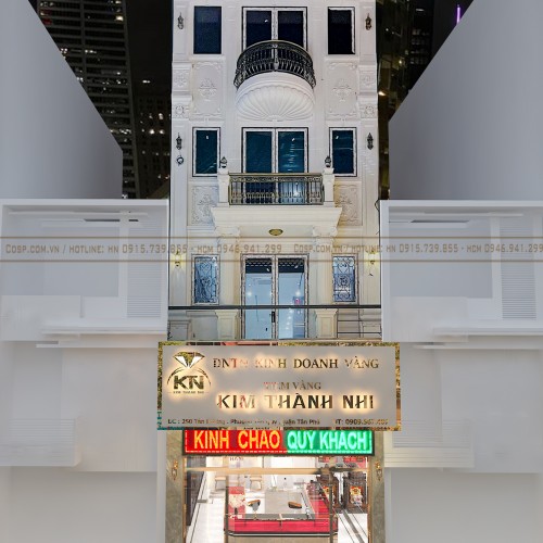 Tiệm vàng Kim Thành Nhi thu hút ánh nhìn của mọi người đi đường bởi hệ thống biển bảng sang trọng và tinh tế. Sử dụng khung sắt ốp Alu trắng cùng bộ chữ nhận diện thương hiệu bằng mica vàng gold thêm phần nổi bật. Đây là phương án biển hiệu rất tiết kiệm chi phí mà có độ bền và tuổi thọ cao. Màu sắc hài hòa, nhã nhặn giúp thể hiện được sự sang trọng vốn có của tiệm vàng kinh doanh.