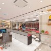 Ngoài ra, bên vách tường bên cạnh đó được bố trí các bức trang trang trí ấn tượng cùng tấm gương soi hình oval. Mọi chi tiết đều được tính toán tỉ mỉ và cẩn thận tăng thêm sự nổi bật và độc đáo cho cửa hàng.