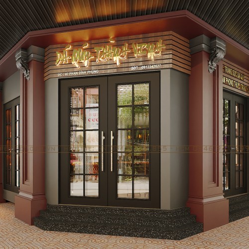 Kinh doanh mặt hàng đá quý phong thủy nên chủ đầu tư mong muốn sở hữu không gian bán hàng mang vẻ đẹp phong cách indochine. Với các gam màu nâu trầm đem đến vẻ đẹp sang trọng vừa thân quen. Mặt tiền của cửa hiệu sử dụng bộ chữ “ Đá quý Thành Vinh” cách điệu mang nét ấn tượng riêng. Chữ nổi phát sáng tăng sức hút cho người nhìn dù họ có ở xa.