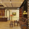 PenViet dành riêng một góc nhỏ đặt bàn ghế tiếp đón khách hàng đến mua sắm tại tiệm đá quý phong thủy Thành Vinh. Bàn ghế làm từ chất liệu gỗ với các đường họa tiết trang trí cách điệu rất ấn tượng.