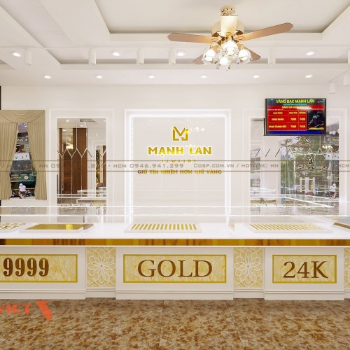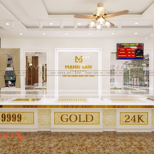 Tiệm vàng Mạnh Lan là điểm đến nổi bật cho những ai yêu thích các món đồ trang sức cao cấp. Chủ đầu tư chú trọng thiết kế nội thất, không gian sang trọng, hiện đại thu hút khách hàng. Dưới đây là chi tiết về mẫu thiết kế tiệm vàng Mạnh Lan - một tác phẩm đầy tâm huyết của PenViet.