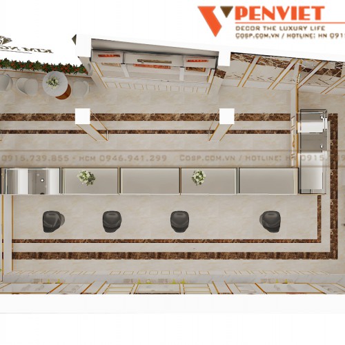 Để đáp ứng nhu cầu của khách hàng, Penviet tư vấn các phương án để mang đến sự lột xác cho cửa tiệm với phong cách hiện đại pha trộn những nét cổ điển và tân cổ điển tạo nên sự sang trọng, đẳng cấp cho cơ sở kinh doanh này.