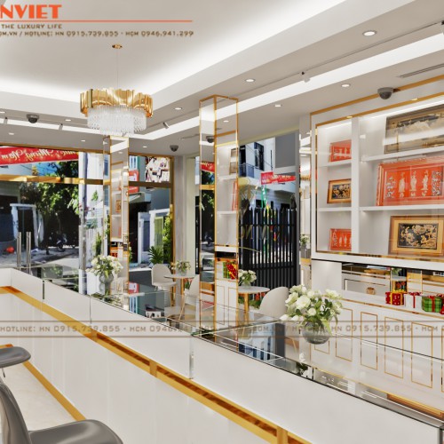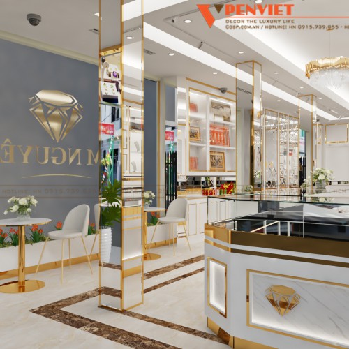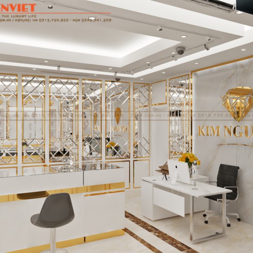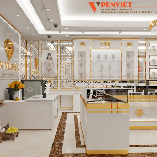 Không gian kinh doanh ngoài việc cần đảm bảo công năng sử dụng thì yếu tố thẩm mỹ và sự phù hợp là điều mà các chủ đầu tư cần lưu ý. Đối với một mẫu thiết kế tiệm vàng, bên cạnh sự chuyên nghiệp còn cần thể hiện được sự sang trọng, đẳng cấp, xứng tầm với giá trị sản phẩm được trưng bày, giới thiệu. Để hình dung rõ hơn về điều này, ngay bây giờ hãy cùng Penviet khám phá không gian tại cửa hàng vàng Kim Nguyên nhé!