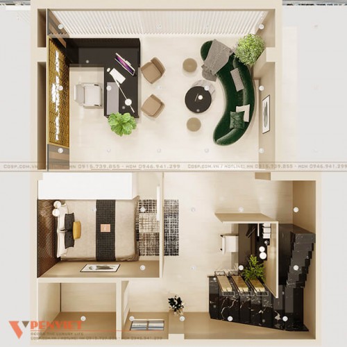 Mặc dù diện tích có phần hạn chế, tuy nhiên, việc sử dụng và sắp xếp nội thất khoa học khiến căn phòng này vẫn phát huy được tối đa công năng của nó.