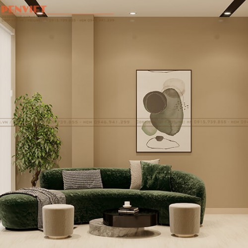 Khu vực tiếp khách sử dụng sofa sang trọng và bàn trà kiểu dáng độc đáo cho thất sự tôn trọng của chủ đầu tư với các đối tác, việc này sẽ tạo nên thiện cảm với hàng.