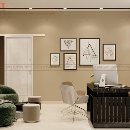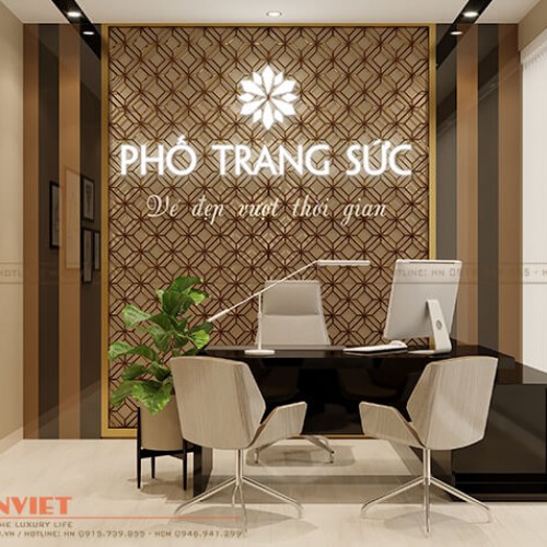 Phòng giám đốc ngoài là nơi làm việc của lãnh đạo, còn là nơi đón tiếp những đối tác, khách hàng quan trọng. Bởi vậy, Penviet đã làm nổi bật lên những nét đặc trưng nhất trong phong cách cũng như ý tưởng thiết kế Trang Sức Phố nhằm tạo nên sự ấn tượng cho không gian này.
