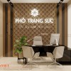 Phía sau bàn làm việc, chúng tôi thiết kế vách logo khung vách gỗ Veneer, vách hoàn thiện CNC gỗ tôn lên Logo và tên cửa hàng bằng Mica Đài Loan phát sáng và slogan bằng Mica. Việc setup không gian này sẽ giúp tạo được ấn tượng với đối tác, khách hàng về nhận diện thương hiệu của cửa hàng kim cương Trang Sức Phố.