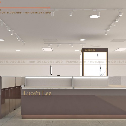 Với hạn chế về diện tích, Penviet lực chọn cách bài trí hệ thống tủ kệ một cách thông minh, vừa khéo léo giới hạn không gian cửa tiệm, tạo sự phân chia với các gian hàng khác, vừa mang đến sự rộng rãi, thông thoáng cho Luce’n Lee.