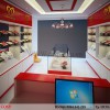 Chất liệu chính được sử dụng cho nội thất cửa hàng là gỗ MDF phun sơn với các ưu điểm bền, nhẹ, chống cong vênh, mối mọt, đem đến cho sản phẩm nội thất chất lượng cũng như tính thẩm mỹ cao. Không gian cửa hàng được sử dụng hợp lý, vừa hỗ trợ tối đã cho việc trưng bày sản phẩm vừa tạo không gian thông thoáng cho bên trong cửa hàng.