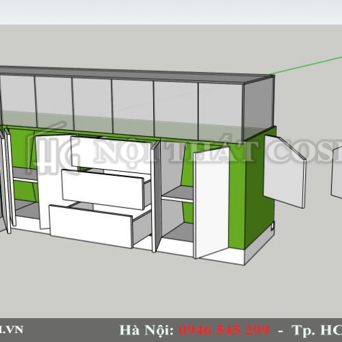 Ngoài công năng trưng bày thì hệ tủ chúng tôi còn thiết kế tích hợp nhiều tab dùng để chứa vật dụng cần thiết.