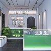 Màu sắc chính được KTS của chúng tôi lựa chọn cho không gian cửa hàng vàng bạc anh Hùng đó là màu xanh và trắng. Đây là hai màu sắc dịu nhẹ khi kết hợp với nhau mang lại một không gian tươi sáng và bắt mắt.
