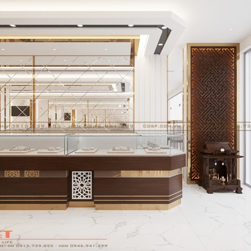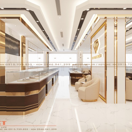 Để tạo sự khác biệt so với các đối thủ cạnh tranh trên thị trường, chủ đầu tư anh Tuấn mong muốn có được phương án trang trí nội thất cho tiệm vàng cực ấn tượng, sang trọng. Thấu hiểu điều này, PenViet đã đưa ra ý tưởng thiết kế nội thất tiệm vàng Kim Dung Tuấn mang phong cách hiện đại, sử dụng các chi tiết trang trí vàng gold đẳng cấp và thu hút. Bài viết dưới đây sẽ giúp bạn đọc có thêm sự tham khảo về những điểm nhấn nổi bật của dự án.