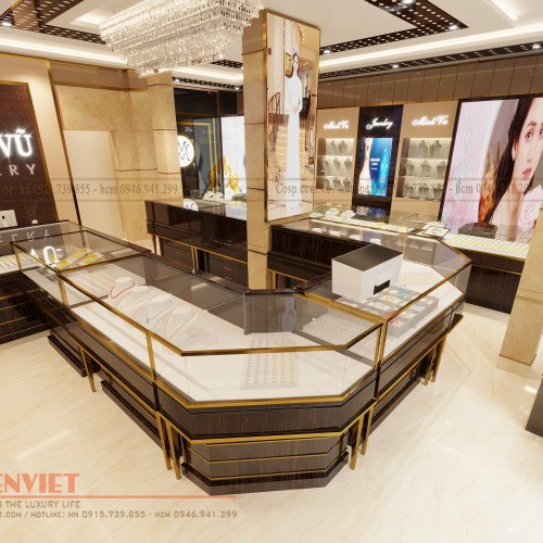 Tiệm vàng bạc là nơi bán những đồ trang sức cao cấp, xa xỉ nên đòi hỏi không gian vô cùng sang trọng và hiện đại, để tôn nên giá trị của sản phẩm. Penviet là một bên chuyên thiết kế cửa hàng vàng bạc, shop thời trang, showroom, gian hàng,… Được sự tin tưởng, Anh Vũ đã hợp tác cùng Penviet cho dự án cửa hàng vàng bạc của mình.