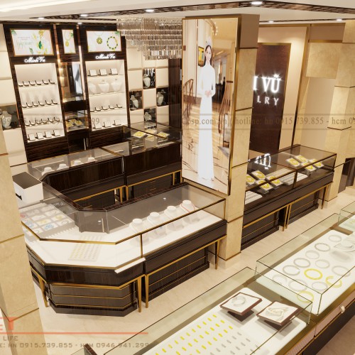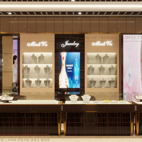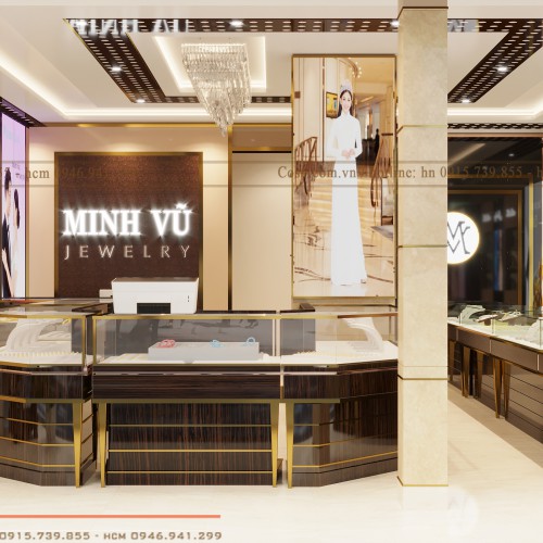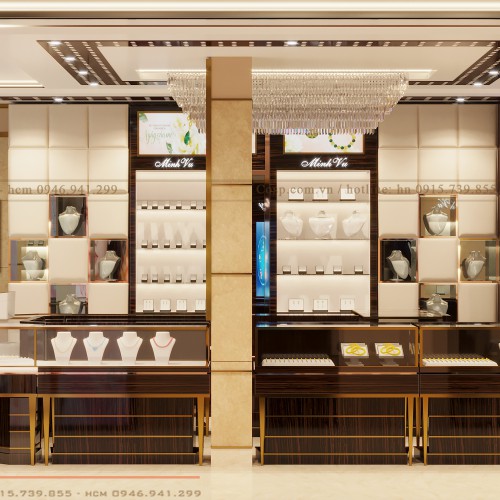 Thiết kế hệ tủ cửa hàng trang sức Minh Vũ
