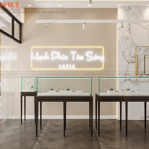 Thiết kế nội thất tiệm trang sức Lacia có cách bài trí tủ kệ khoa học, tạo thành những lối đi thuận tiện cho nhân viên và khách hàng. Đây cũng là một cách giúp hoàn thiện trải nghiệm mua sắm và tạo thiện cảm với người tiêu dùng.