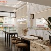 Bên cạnh đó, những gam màu sáng cũng được kết hợp khéo léo tạo nên màu sắc chủ đạo cho không gian. Việc này giúp ánh sáng phản xạ và luân chuyển tốt hơn, tạo cảm giác cửa tiệm trở nên thông thoáng.