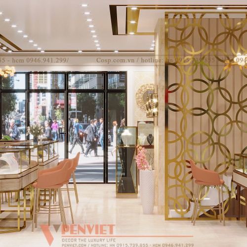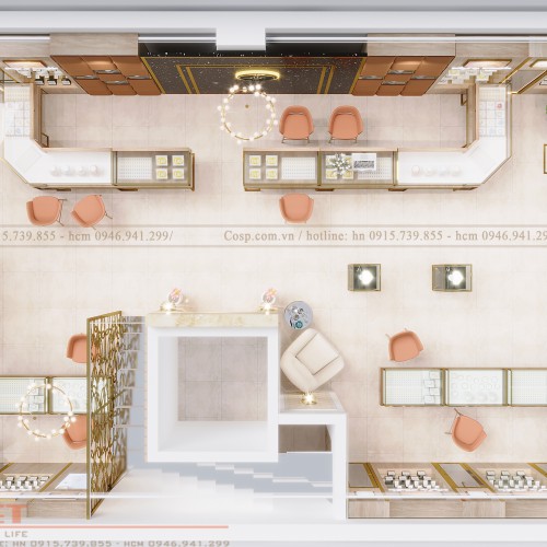 Bạn có ấn tượng với mẫu thiết kế tiệm vàng này không? Nếu bạn cũng muốn sở hữu một không gian kinh doanh trang sức đẹp như thế này, hãy liên hệ ngay với Nội thất Cosp để được tư vấn nhé.