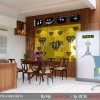 Ở phía bên trong góc của tiệm là khu vực ngồi chờ của khách hàng cũng không kém phần tinh tế. Bức tường phía sau được ốp một tấm gỗ melamine cao cấp và sau đó là một tấm kim loại có màu vàng kim với hình ảnh những viên kim cương ở trên đó. Điều này giúp cho nét sang trọng trở nên nội bật hơn ở mọi góc độ.