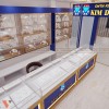 Với tiệm vàng Kim Dung Nam, chúng tôi sử dụng hệ tủ trưng bày sản phẩm bao gồm hệ tủ sát tường và tủ thấp giữa nhà được bố trí khoa học phù hợp với đặc trưng bày bán nhiều sản phẩm mặt hàng vàng bạc, nữ trang. Mặt kính của tủ được làm bằng kính cường lực giúp đảm bảo an toàn cho các sản phẩm. Tủ trưng bày bằng gỗ công nghiệp khéo léo lồng ghép bộ nhận diện thương hiệu làm từ Mica.