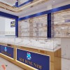 Đi theo ý tưởng thiết kế tiệm vàng ban đầu, nội thất tiệm vàng sử dụng tông màu vàng, xanh và trắng kết hợp. Bố cục nội thất đơn khoa học đảm bảo vừa có nhiều không gian trưng bày sản phẩm nhất vừa tạo sự thông thoáng cho không gian.