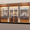 Thiết kế mặt tiền tiệm vàng chị Út đơn giản nhưng không hề đơn điệu. Sự đơn giản của mặt tiền này lại có sự tinh tế, lịch sự tạo nét độc đáo, thu hút khách hàng giữa những mặt tiền màu sắc xung quanh. Chúng tôi lựa chọn kính cường lực khung nhôm sinfa sơn nhũ vàng làm cửa ra vào và vách ngăn giữa không gian bên trong với không gian bên ngoài shop. Chất liệu kính cường lực trong suốt giúp khách hàng có thể nhìn thấy không gian trưng bày sản phẩm bên trong shop.