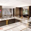 Để tối ưu diện tích trưng bày, PenViet gợi ý khách hàng sử dụng tủ hình chữ U. Tủ vàng làm từ chất liệu gỗ MDF kết hợp kính cường lực giúp tô điểm thêm cho đồ trang sức.