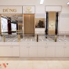 Ngoài ra đan xen vào đó là các vách trang trí, vách logo thương hiệu ấn tượng, tăng độ nhận diện cho tiệm vàng Dũng. Chi tiết decor hài hòa mang đến tổng thể không gian hài hòa và hiện đại.