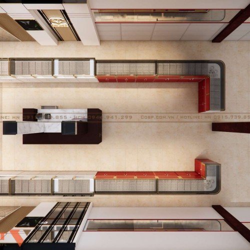 Khu vực quầy nhân viên được thiết kế bên trong của hệ tủ trang sức để hỗ trợ khách hàng hiệu quả nhất.