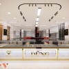 Hệ thống đèn chiếu sáng hài hòa tạo nên không gian lộng lẫy và ấn tượng để tô điểm thêm cho trang sức. Ánh sáng là yếu tố quan trọng trong các tiệm vàng bởi sẽ làm cho các món trang sức thêm lung linh hơn.