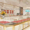 Được thiết kế với phong cách tối giản, trang nhã, khu vực này được bày trí đơn giản với sofa màu kem bọc nỉ và bàn trà khung inox mạ xi vàng mặt kính sang trọng, phù hợp với tổng thể thiết kế tiệm vàng Kim Ngân Yến.