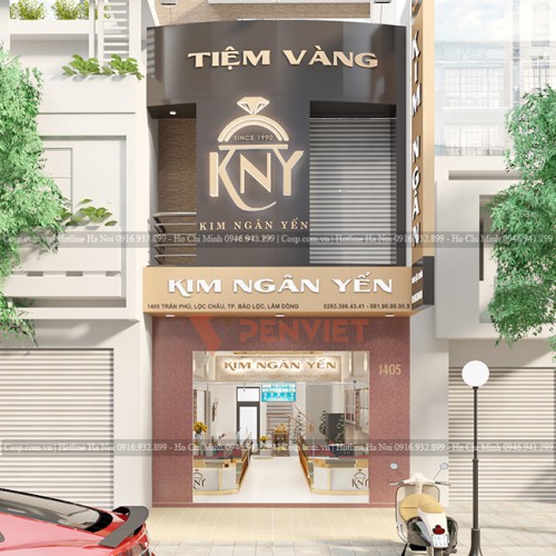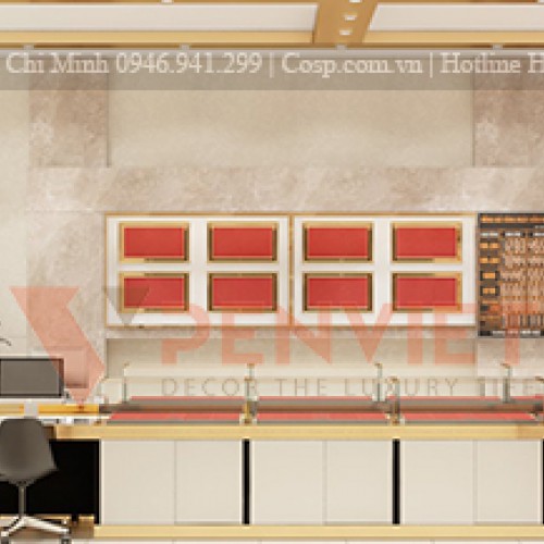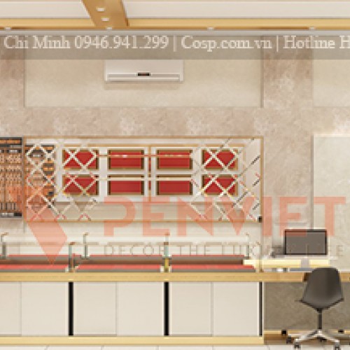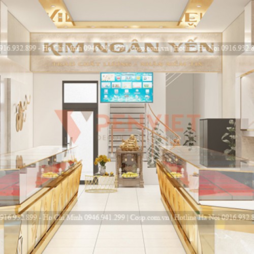 Dưới đây là mẫu thiết kế tiệm vàng Kim Ngân Yến của anh Phúc tại Lâm Đồng do Nội thất Penviet thực hiện.
