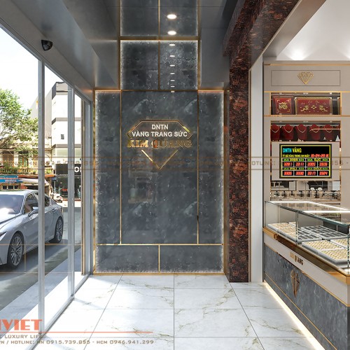 Dựa theo yêu cầu của chủ tiệm vàng anh Quang thì PenViet đã đưa ra ý tưởng thiết kế cửa hàng theo phong cách luxury đẳng cấp, sang trọng. Bố cục không gian hợp lý được sử dụng làm showroom trưng bày và setup phòng khách đón tiếp khách. Trong đó, màu sắc chủ đạo là màu vàng, trắng và xám kết hợp ánh sáng hài hòa mang lại sự tươi mới và độc đáo cho không gian.