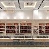 Quầy trang sức làm từ gỗ MDF giả vân đá xám kết hợp kính cường lực cùng đèn LED hắt sáng. Nhờ đó mà trang sức vàng được bảo quản cẩn thận, sáng lấp lánh rất đẹp mắt gây kích thích nhu cầu mua sắm của khách hàng.