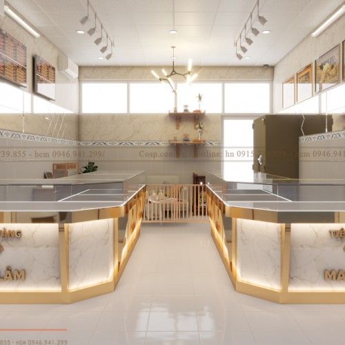 Trên đây là những hình ảnh thiết kế tiệm vàng của chị Mai do COSP thực hiện. COSP tự hào là đơn vị hàng đầu tại Việt Nam trong thiết kế shop và thi công shop tại Việt Nam.