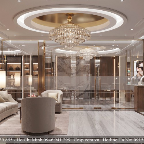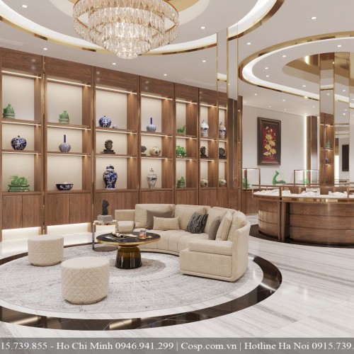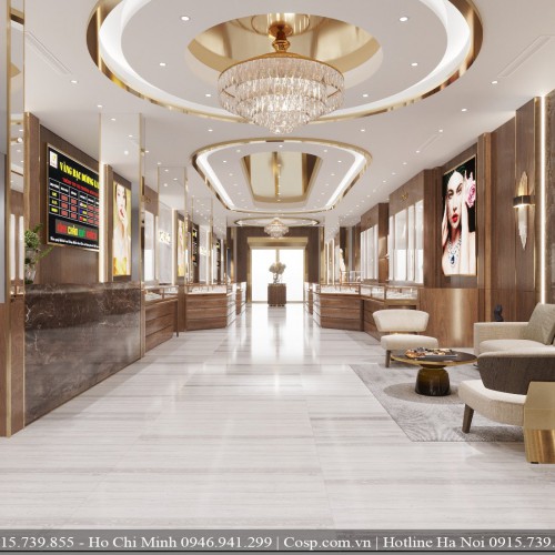 Thiết kế nội thất showroom vàng bạc Phúc Thắng toát lên sự đẳng cấp