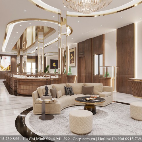 Không gian đẳng cấp này thực sự khiến chúng ta cảm thấy ấn tượng phải không? Để sở hữu những ý tưởng thiết kế tiệm vàng độc nhất, đừng ngần ngại gọi ngay cho PenViet nhé!