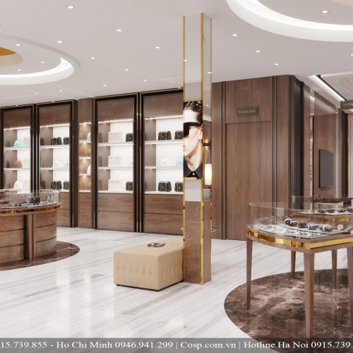 Điều này chẳng những tạo sự nhất quán trong ý tưởng setup mà còn góp phần mang lại hình ảnh chuyên nghiệp cho showroom vàng bạc Phúc Thắng.