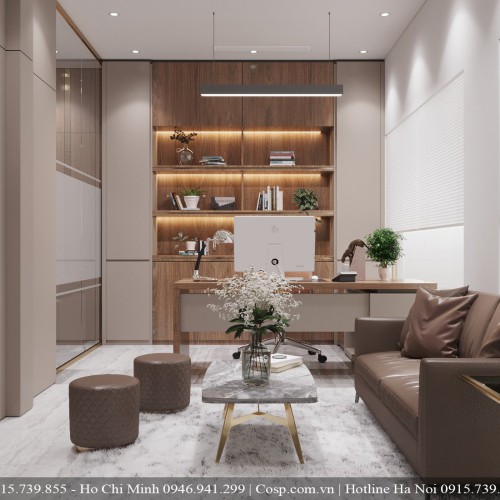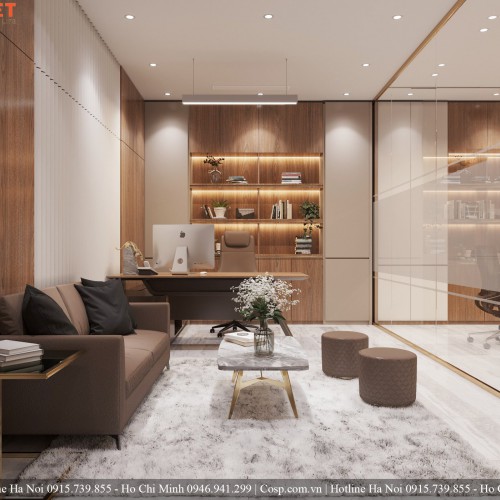 Các phòng làm việc riêng của lãnh đạo được setup để đảm bảo đầy đủ công năng sử dụng cũng như tính thẩm mỹ.