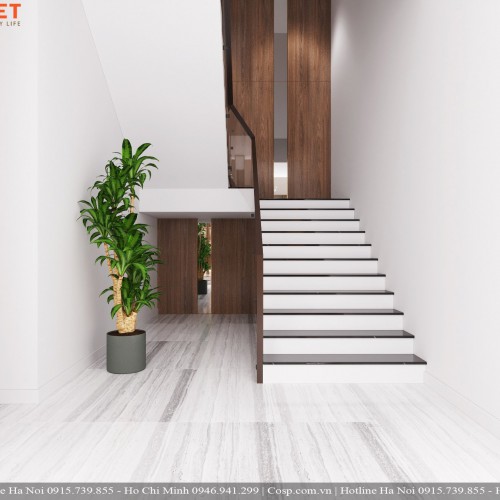 Phối cảnh 3D mặt bằng bố trí nội thất tầng 1