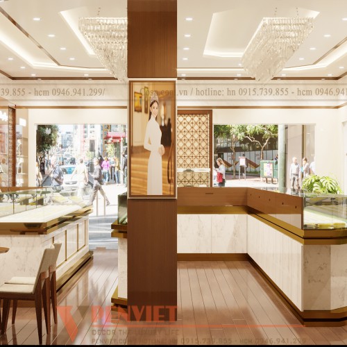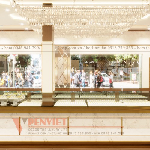 Với những đặc trưng về ngành nghề và sản phẩm, Penviet mong muốn tạo dựng một thiết kế tiệm vàng sang trọng, đẳng cấp, mang phong cách Tân Cổ Điển.