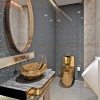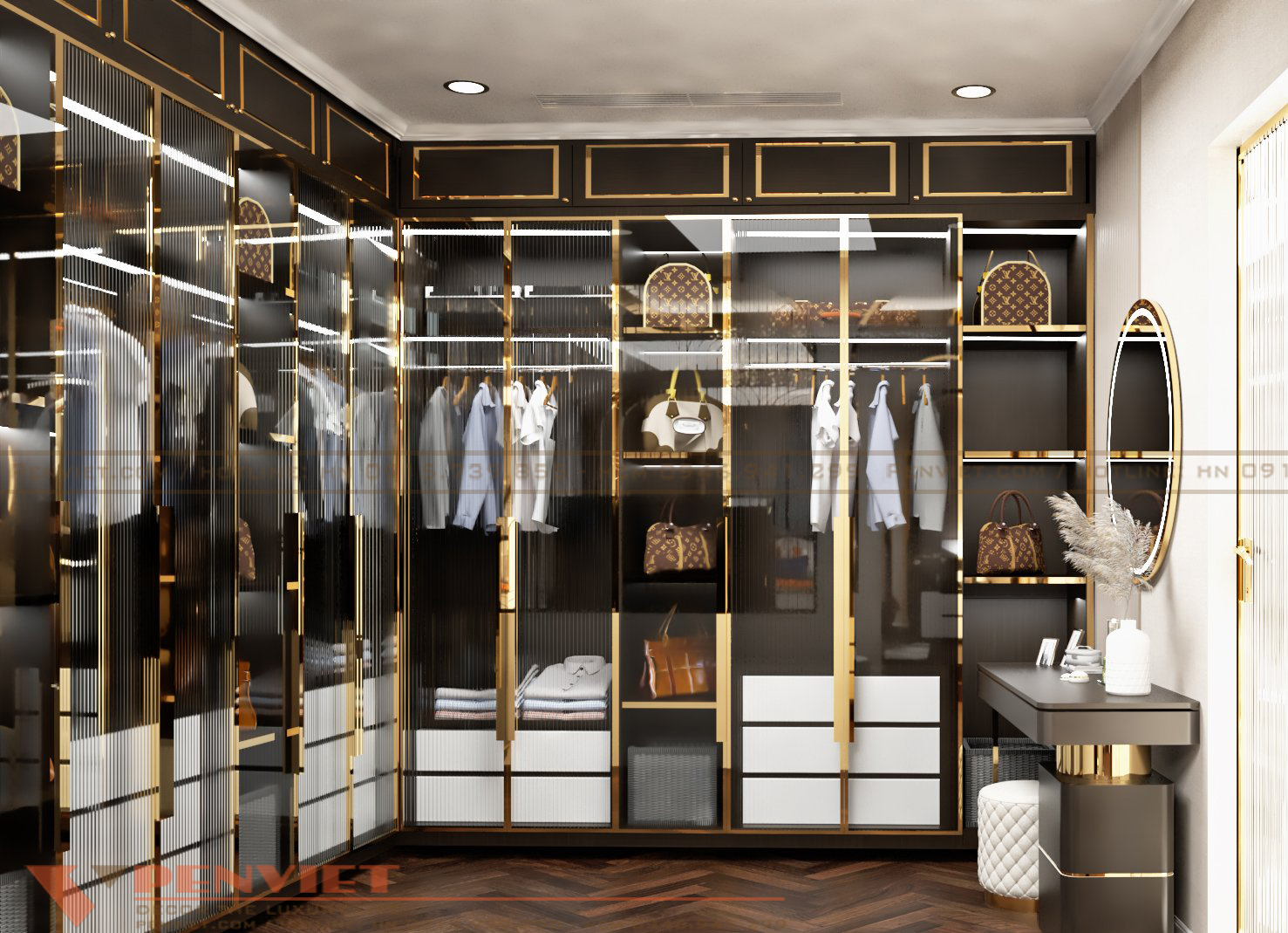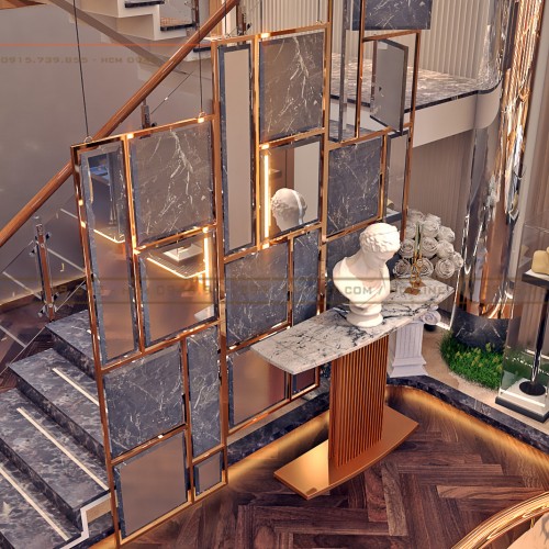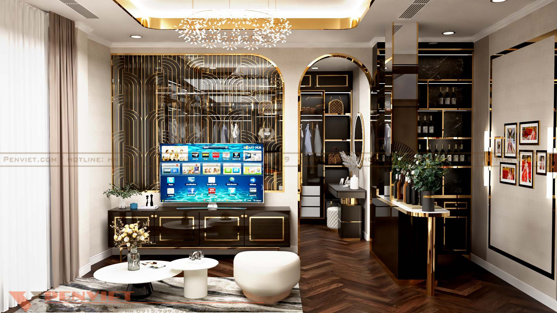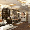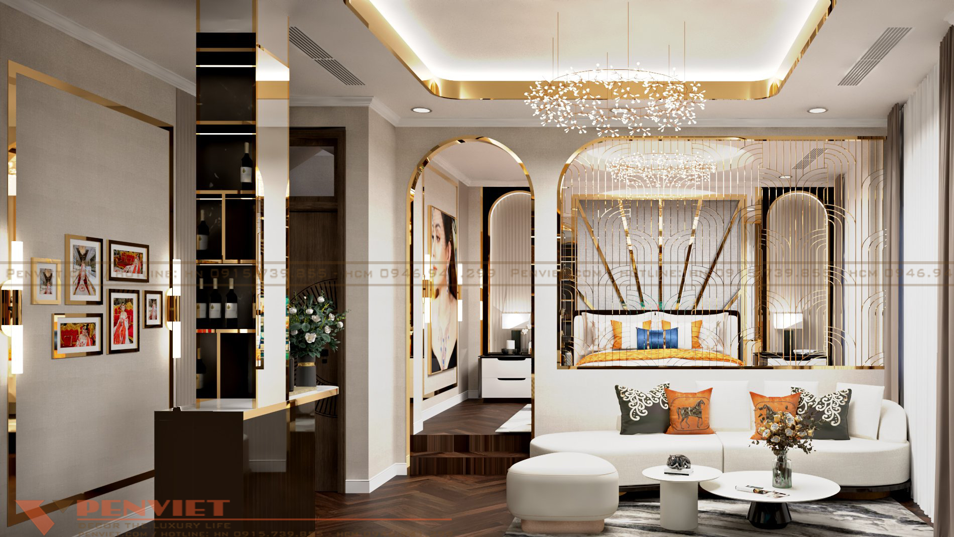 Nội thất tiệm vàng được thiết kế theo phong cách luxury sang trọng. Với bố cục không gian khoa học: tầng trệt và tầng 1 làm showroom trưng bày. Tầng 2 được setup làm phòng làm việc, phòng khách. Tầng còn lại được cải tạo thành không gian sinh hoạt của gia đình.