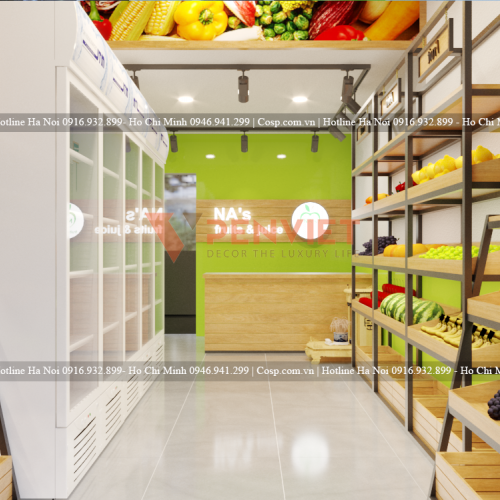 Trên con đường tôi đi về nhà có rất nhiều người bán hoa qua dọc đường. Hoa quả họ bán rẻ hơn nhưng có vẻ không được sạch sẽ bởi bụi bẩn bên ngoài bám vào. Vì thế Nội thất Cosp có mặt ở đây để giải quyết vấn đề đó, chúng tôi là đơn vị thiết kế cửa hàng chuyên nghiệp uy tín. Sau đây là mẫu thiết kế cửa hàng hoa quả NA's Fruits & Juice cho mọi người tham khảo nhé.